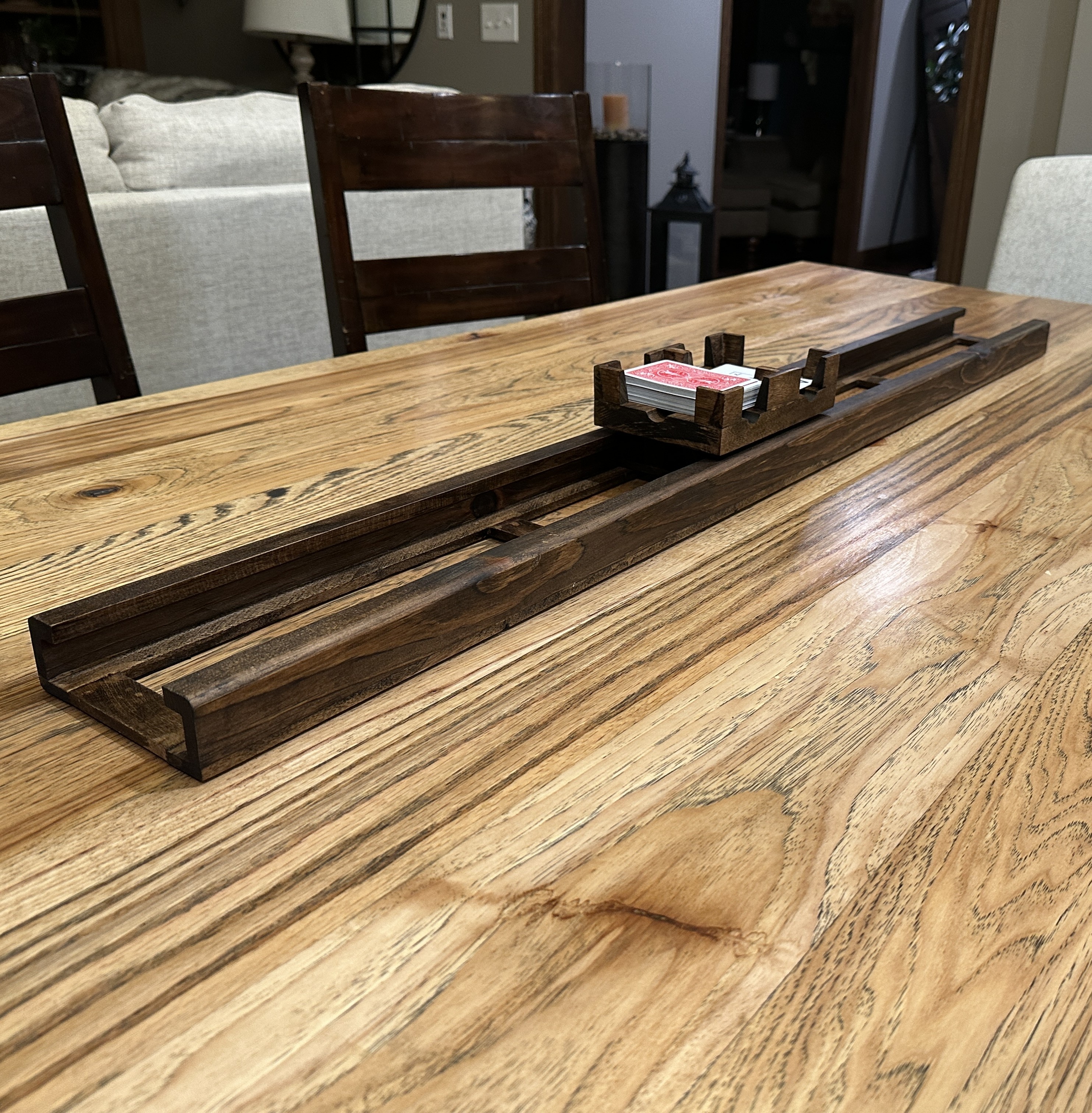 Created for my dad so my family can efficiently play card games on a big table with multiple people.