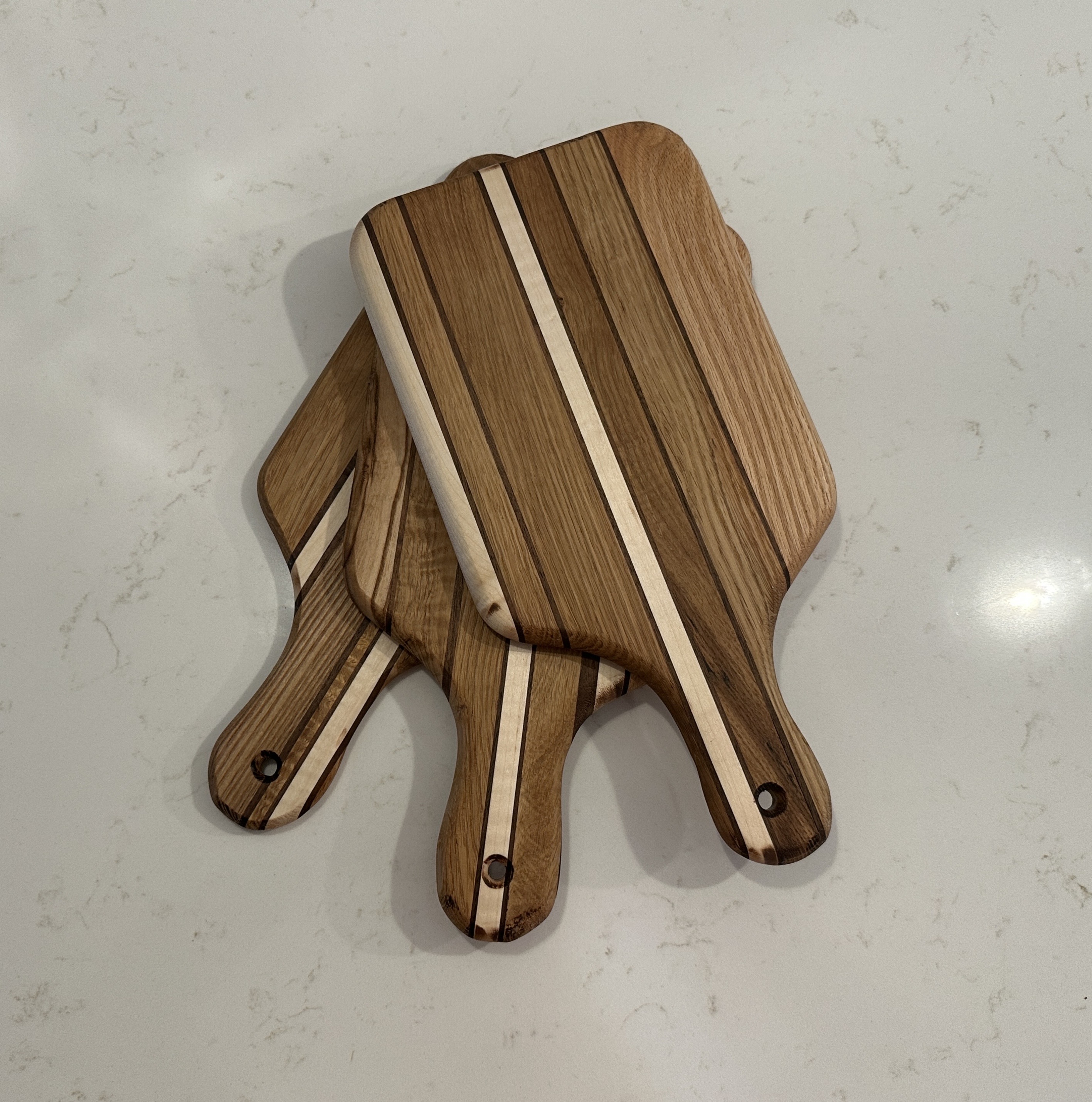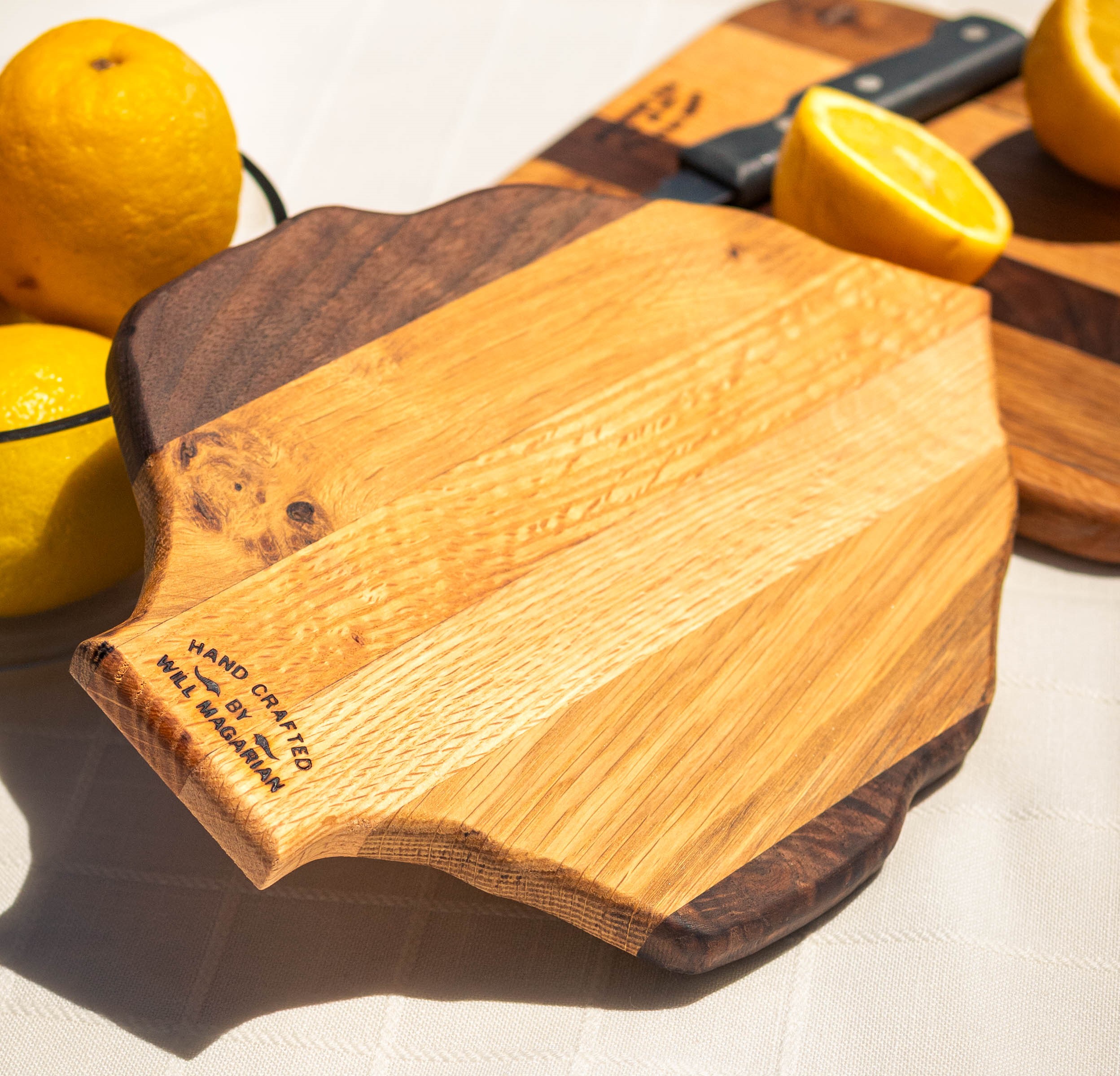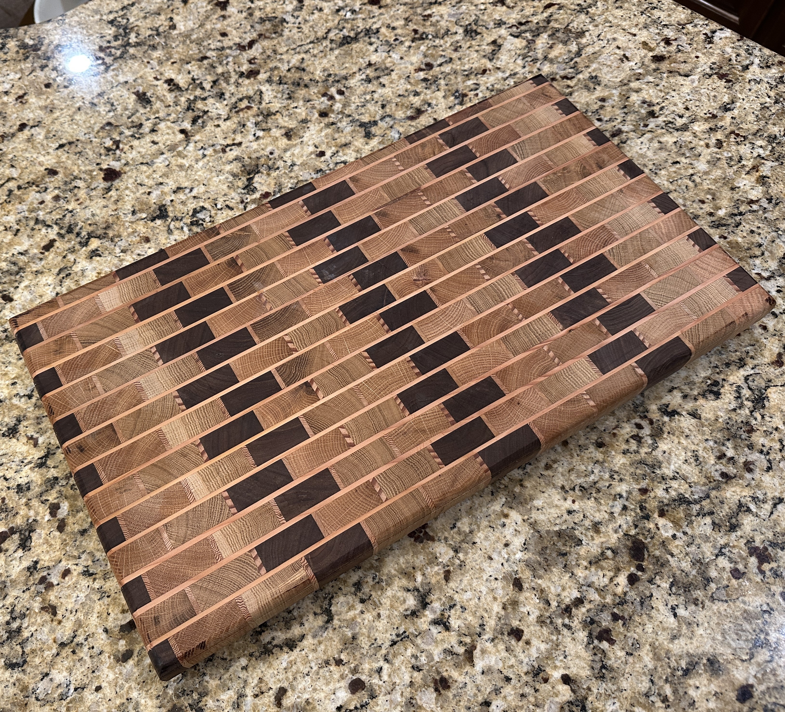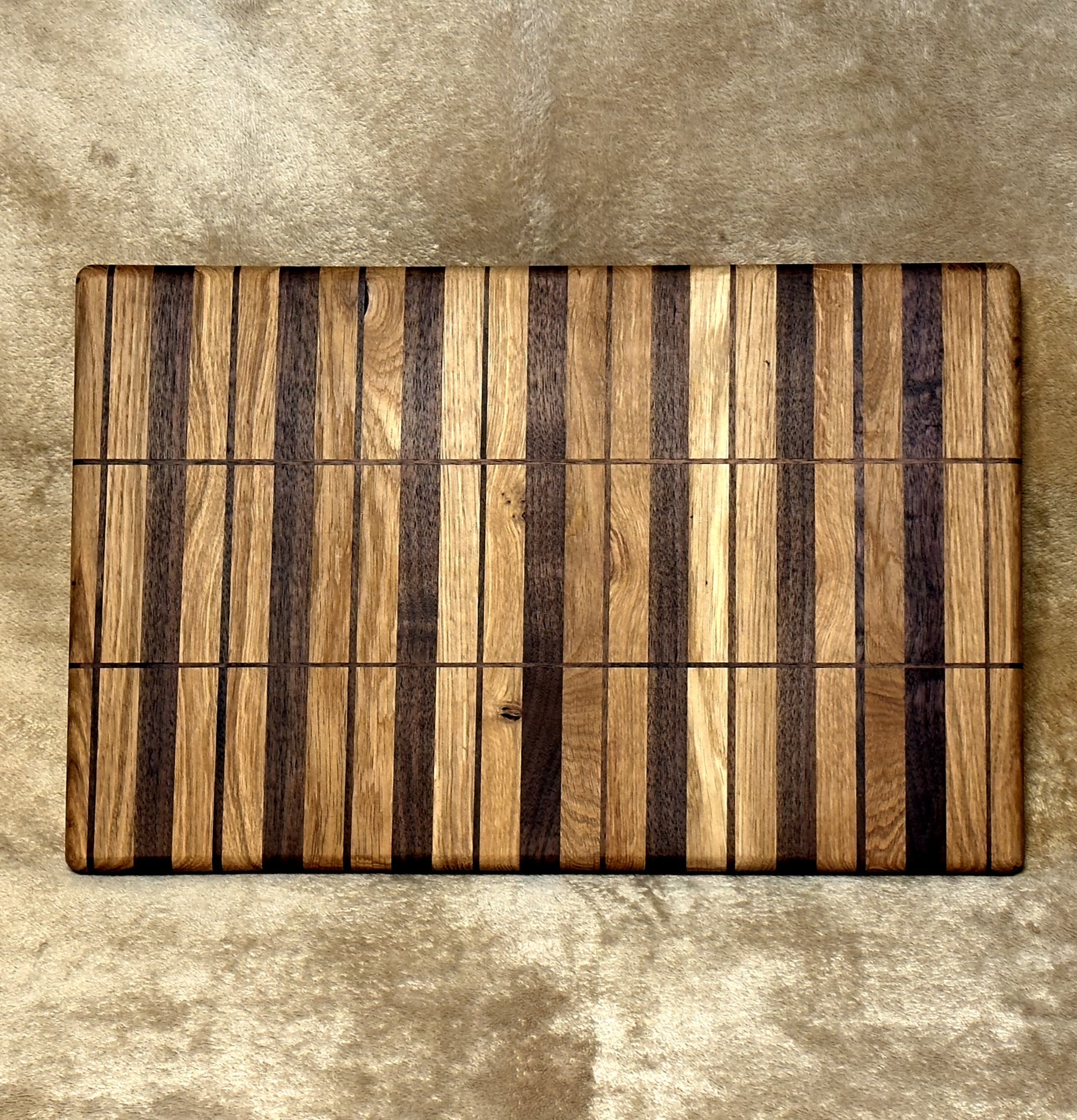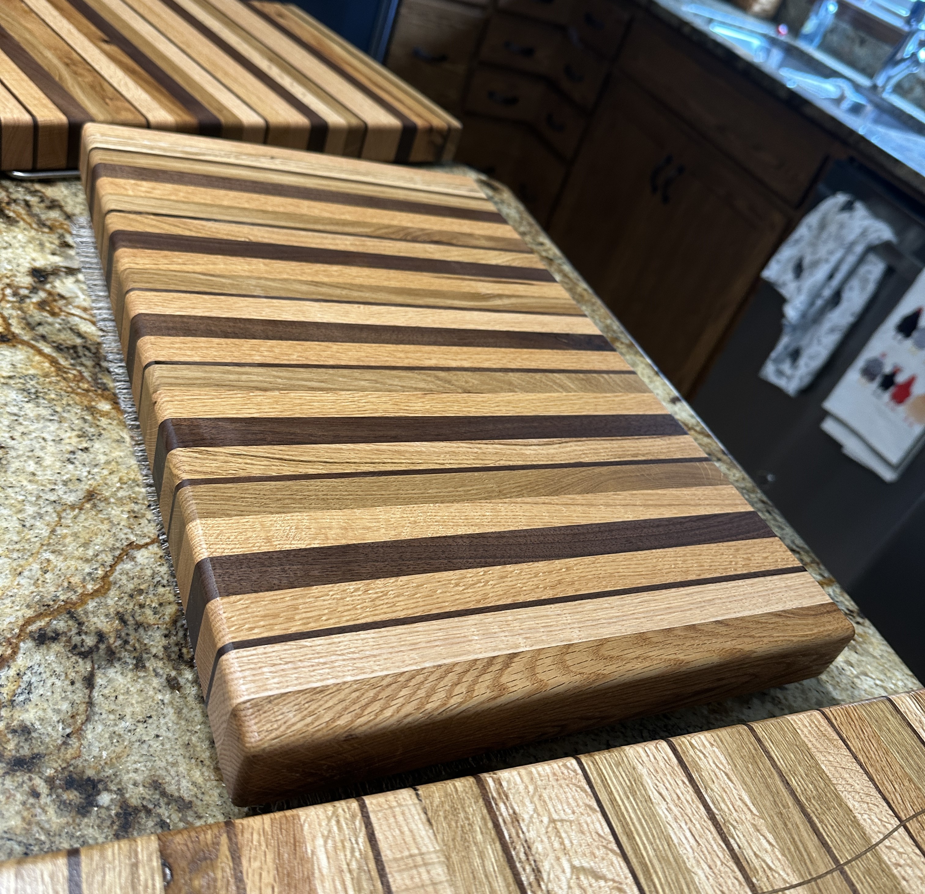 Created as a visually pleasing cutting board contrasting two types of wood.