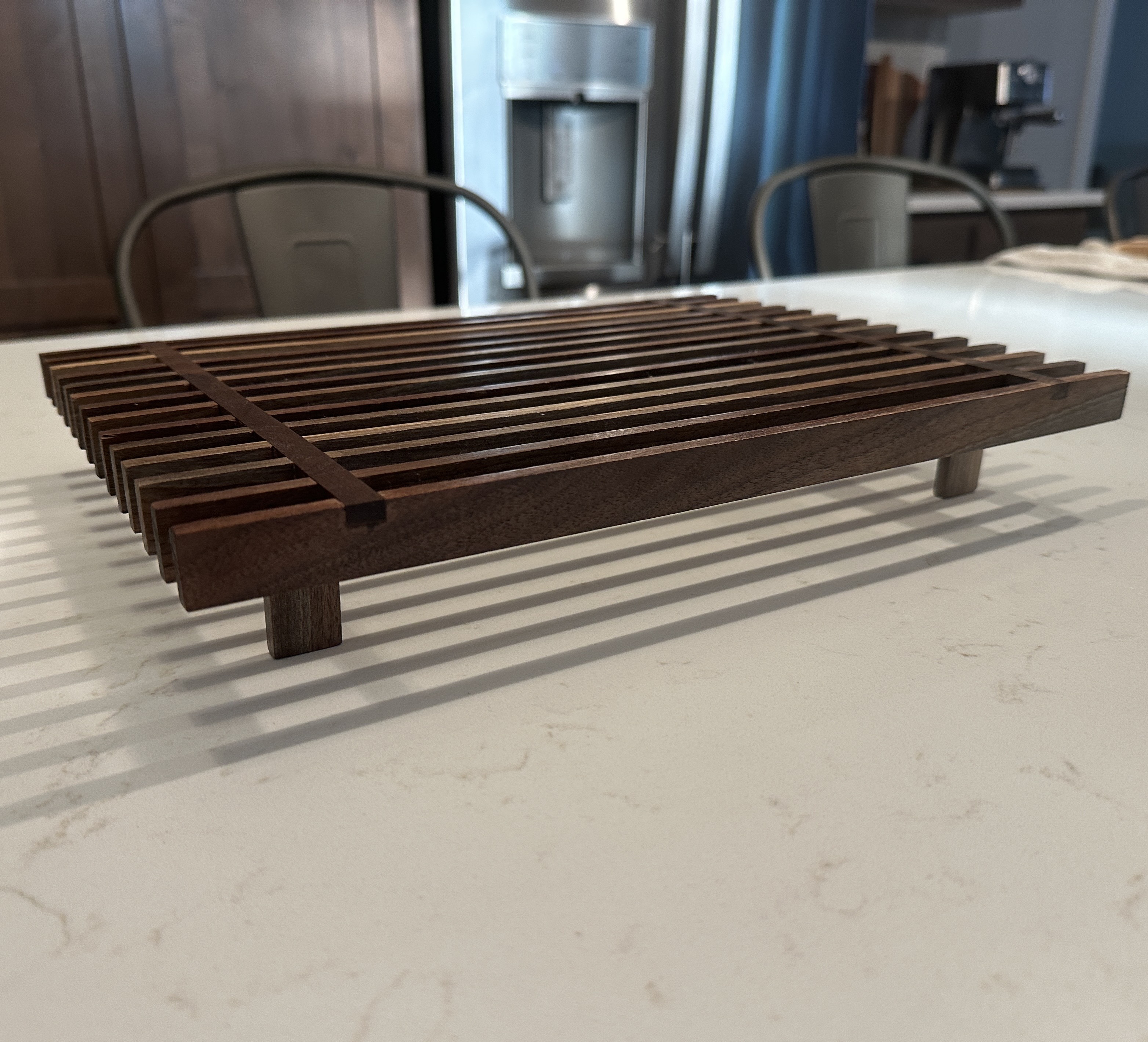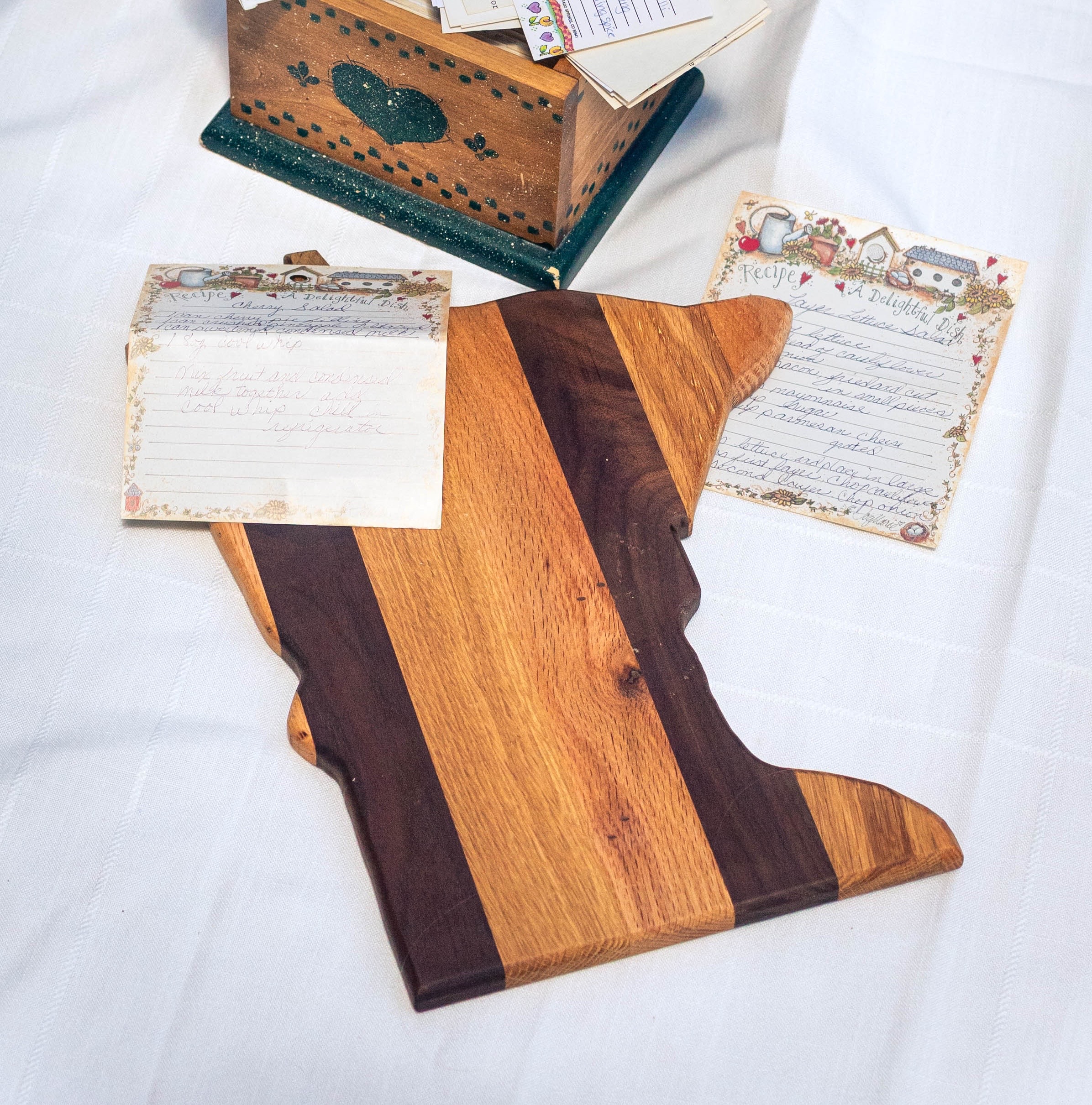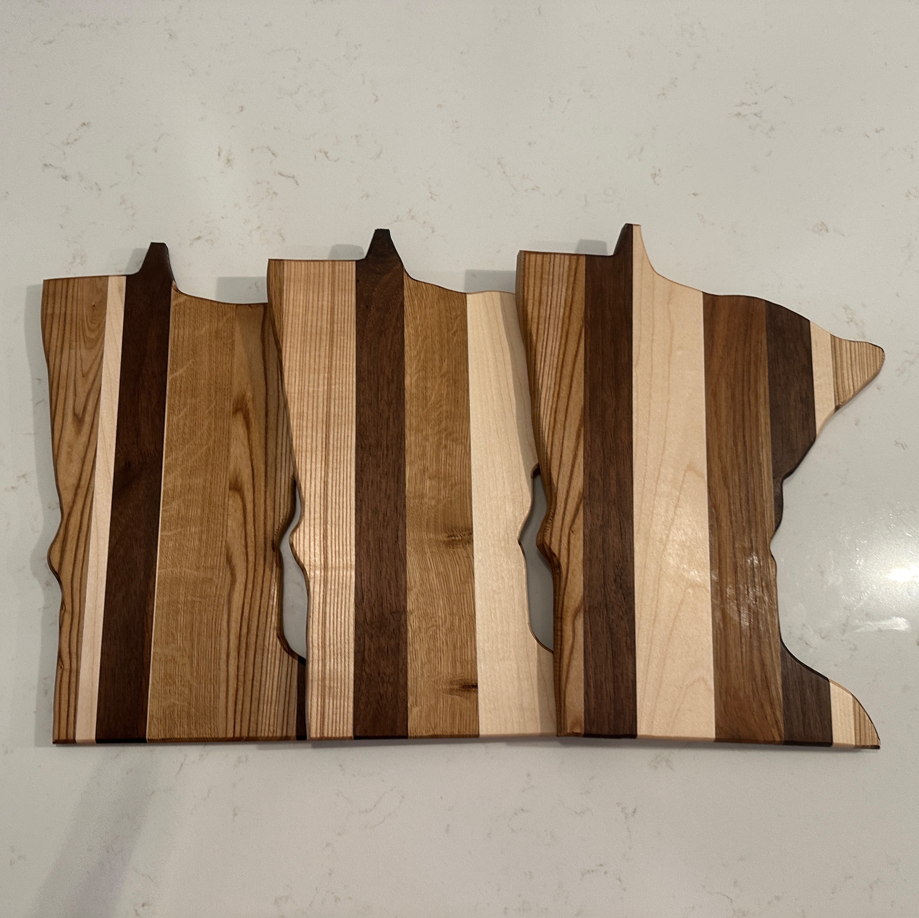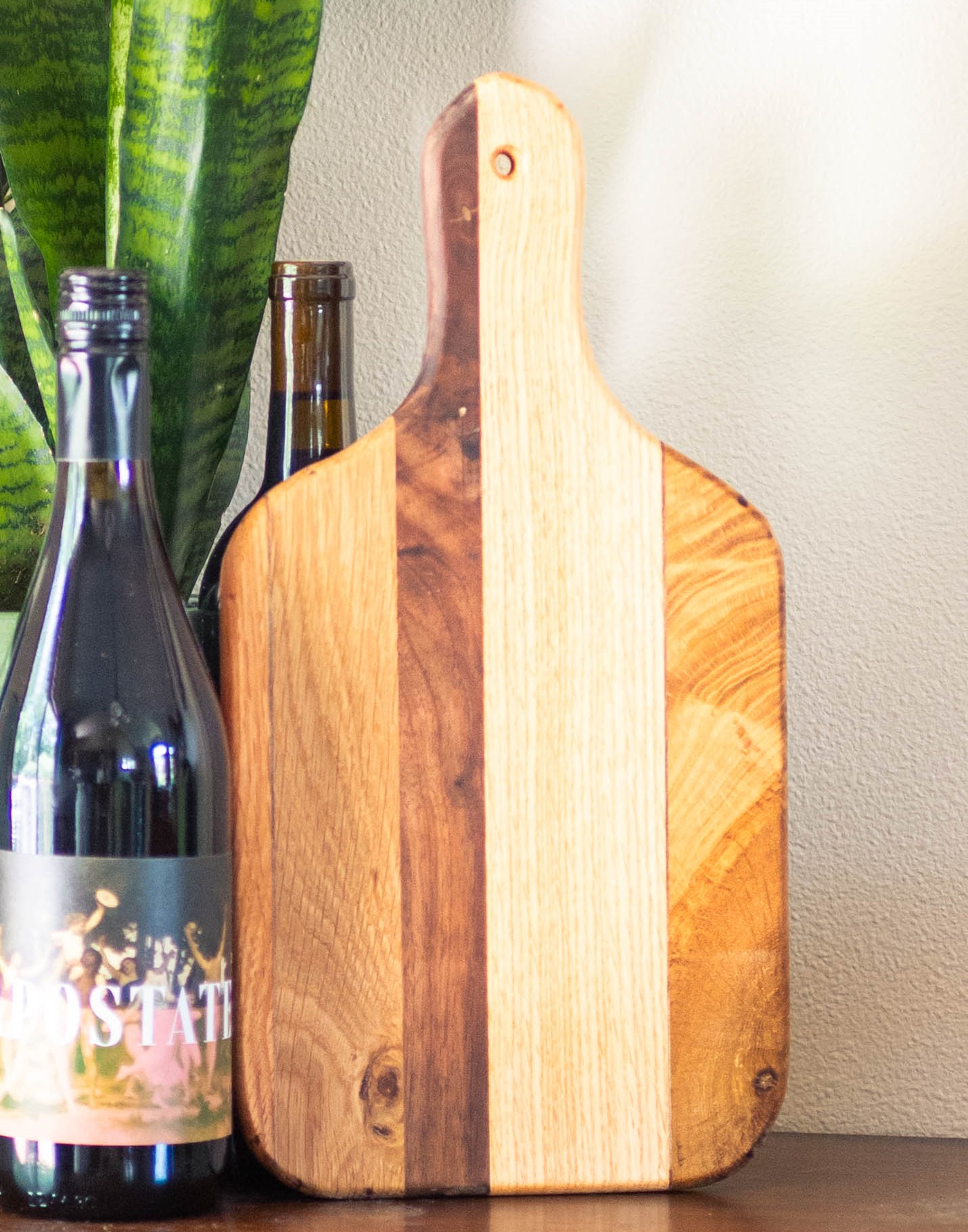 Created as a visually pleasing cutting board contrasting two types of wood.