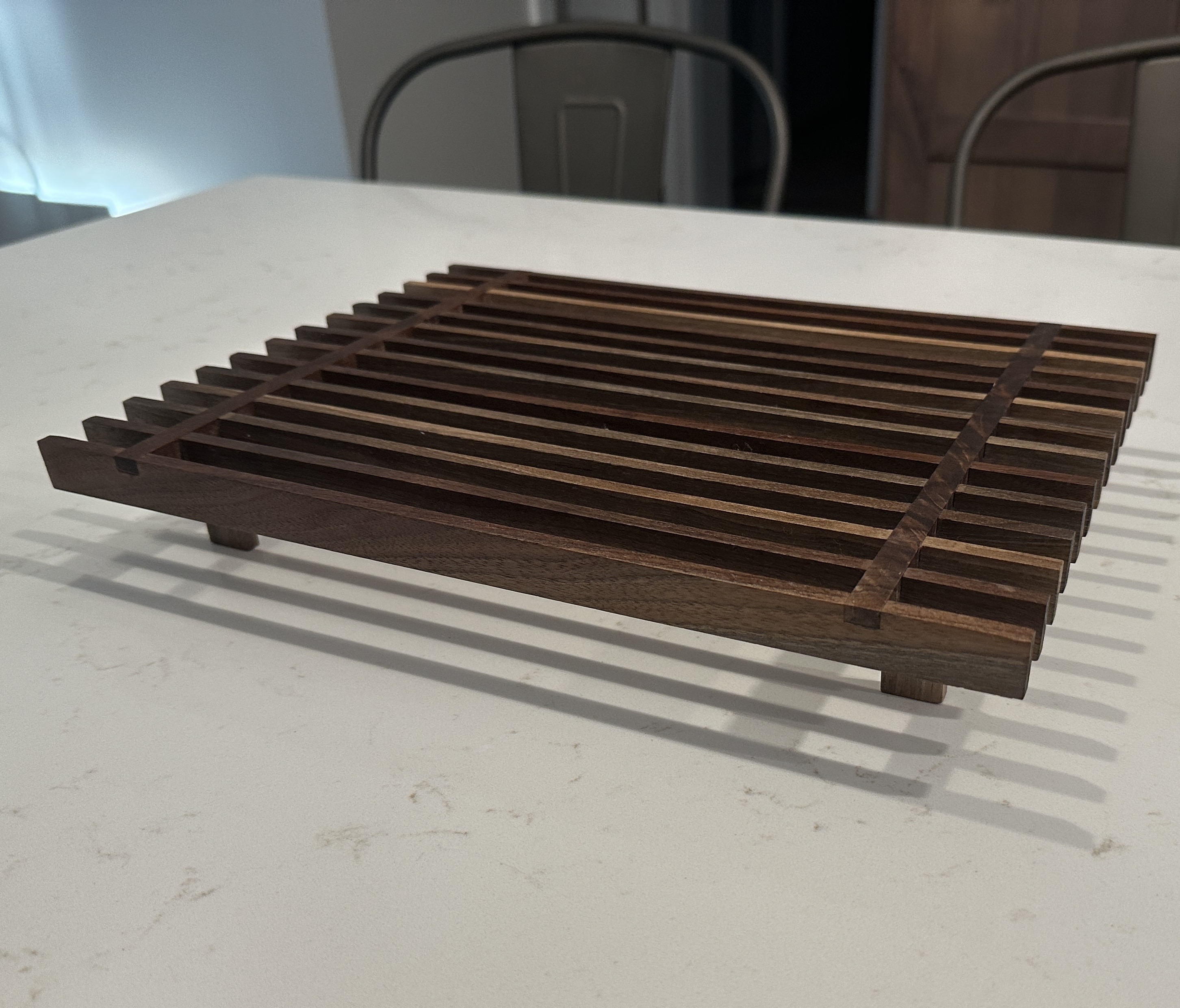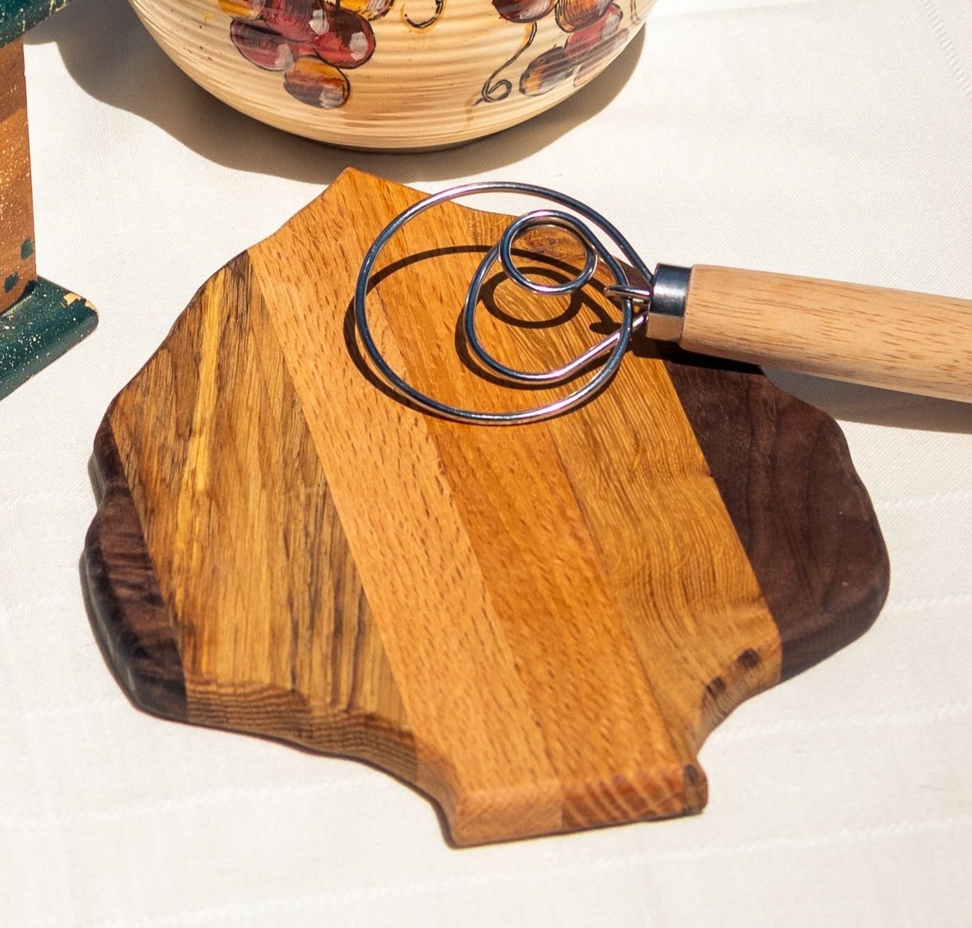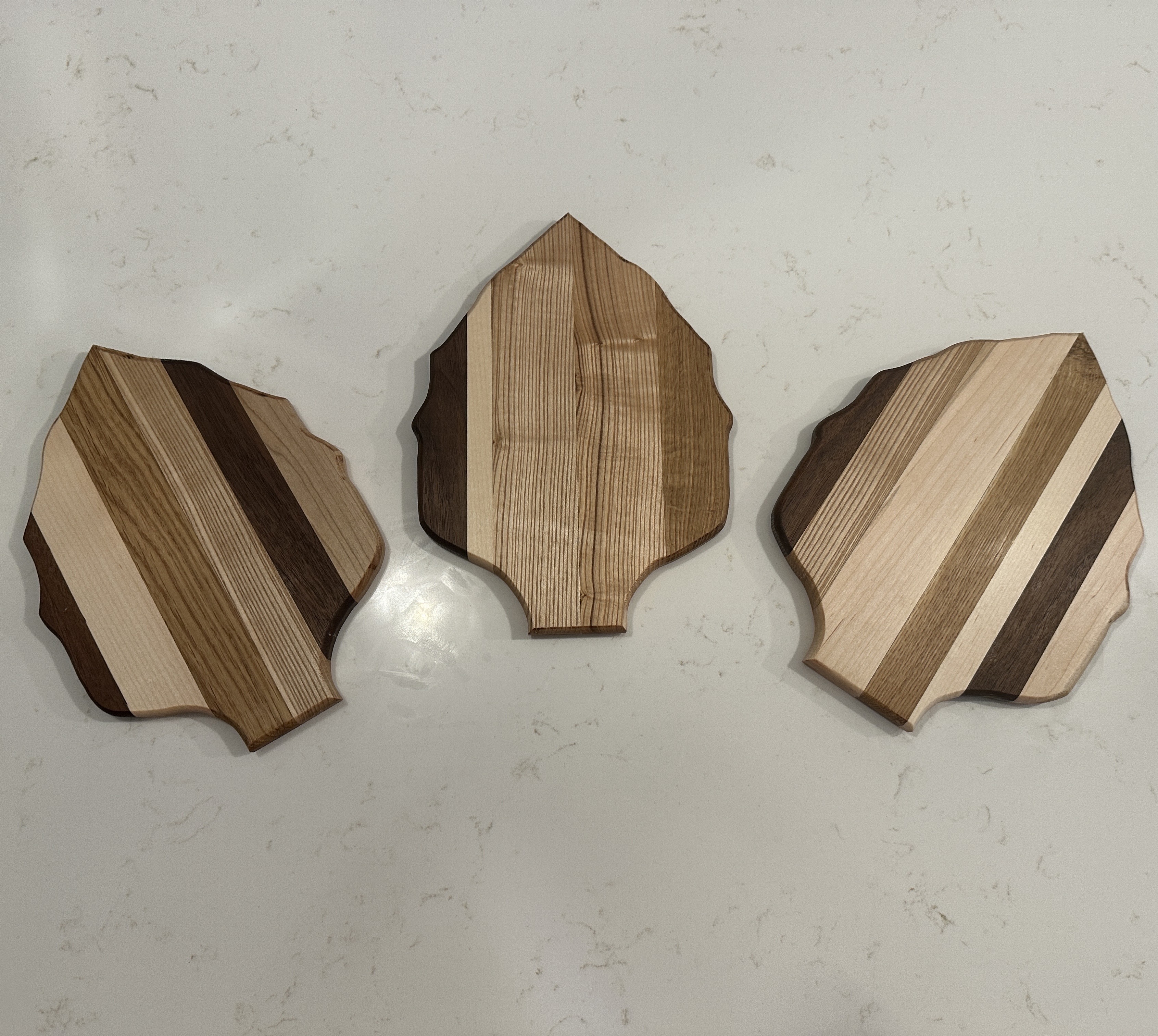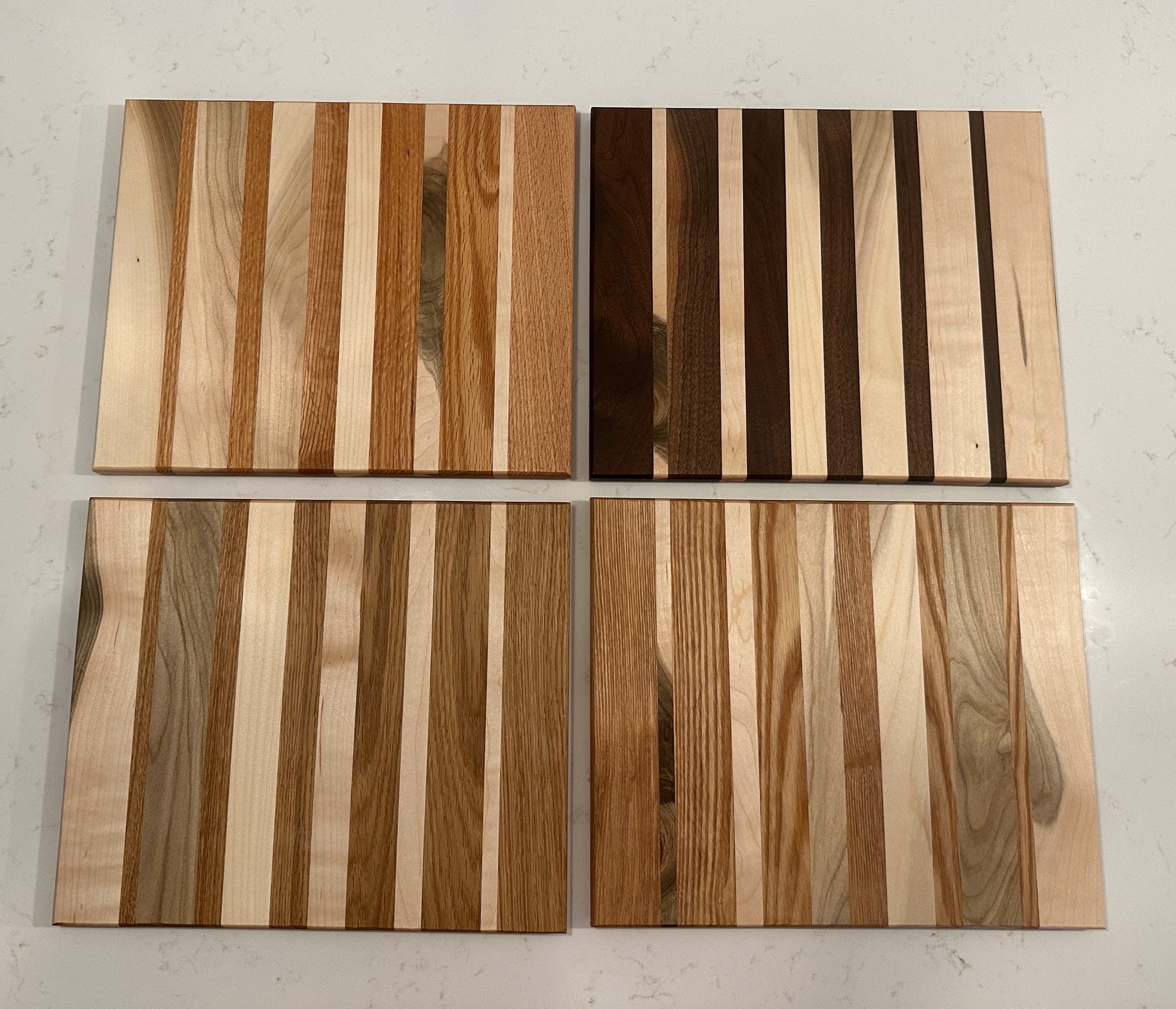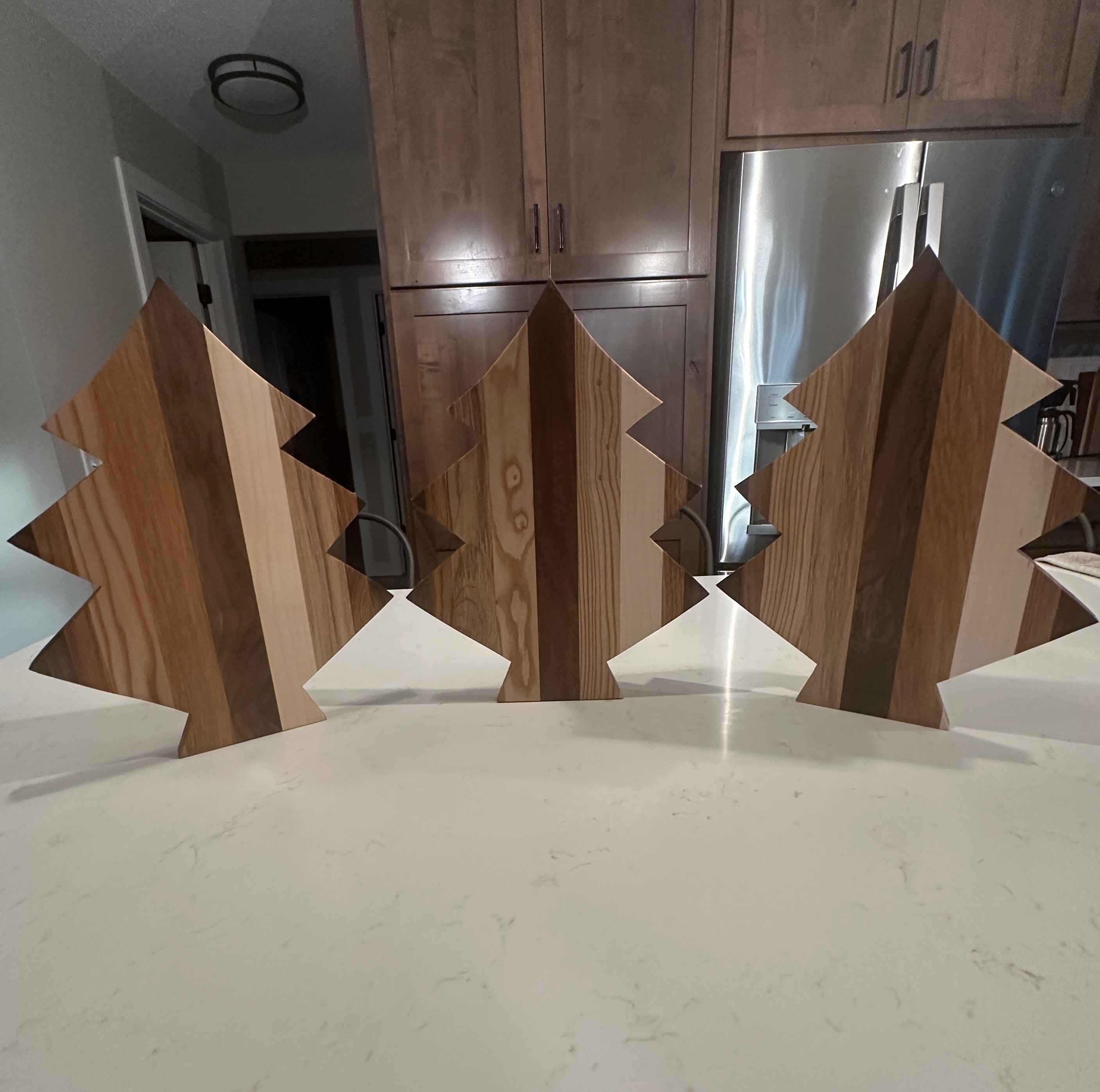 Created as a visually pleasing cutting board contrasting two types of wood.