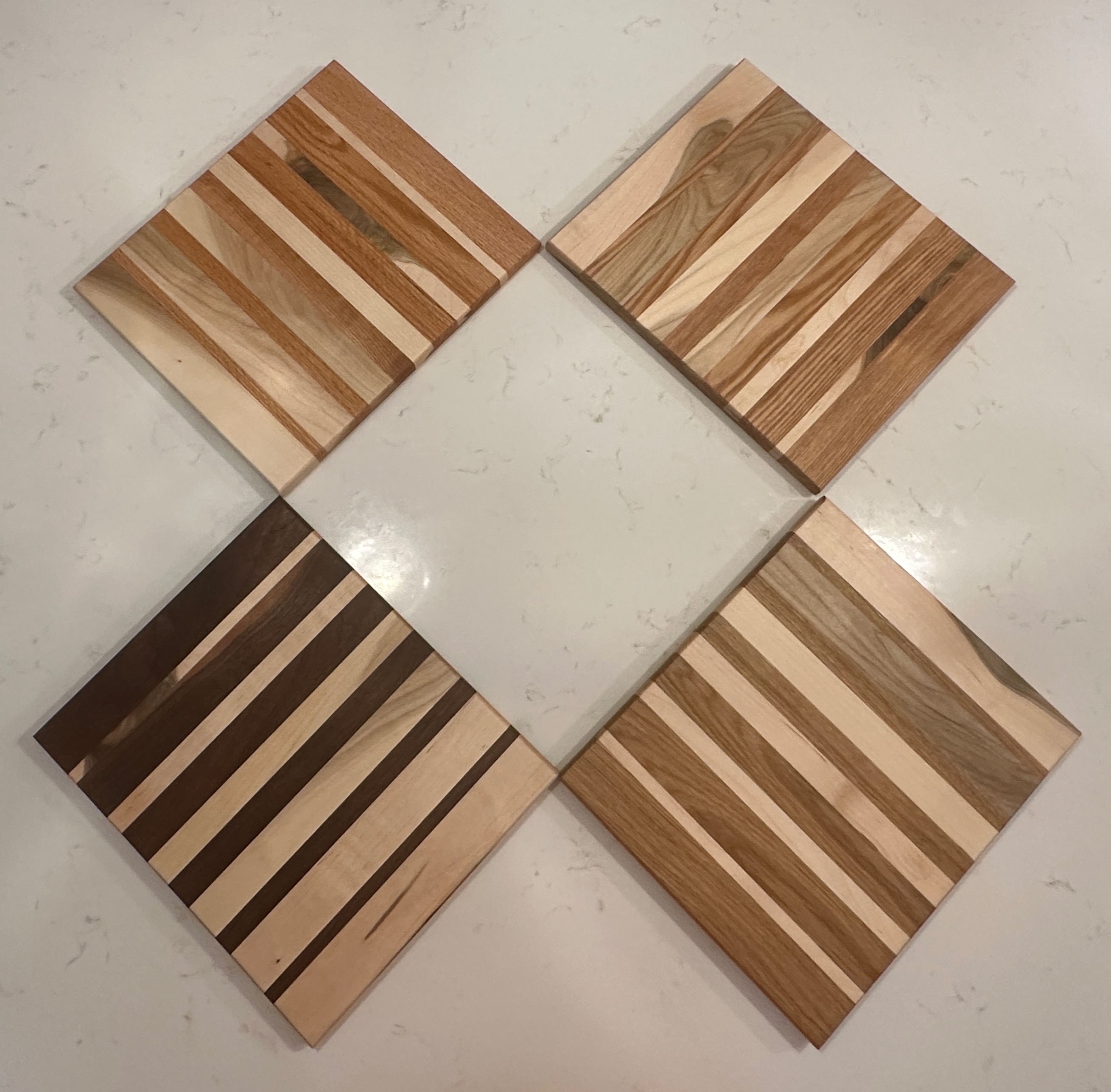 Made from white oak, red oak, maple, black walnut and dark ash.